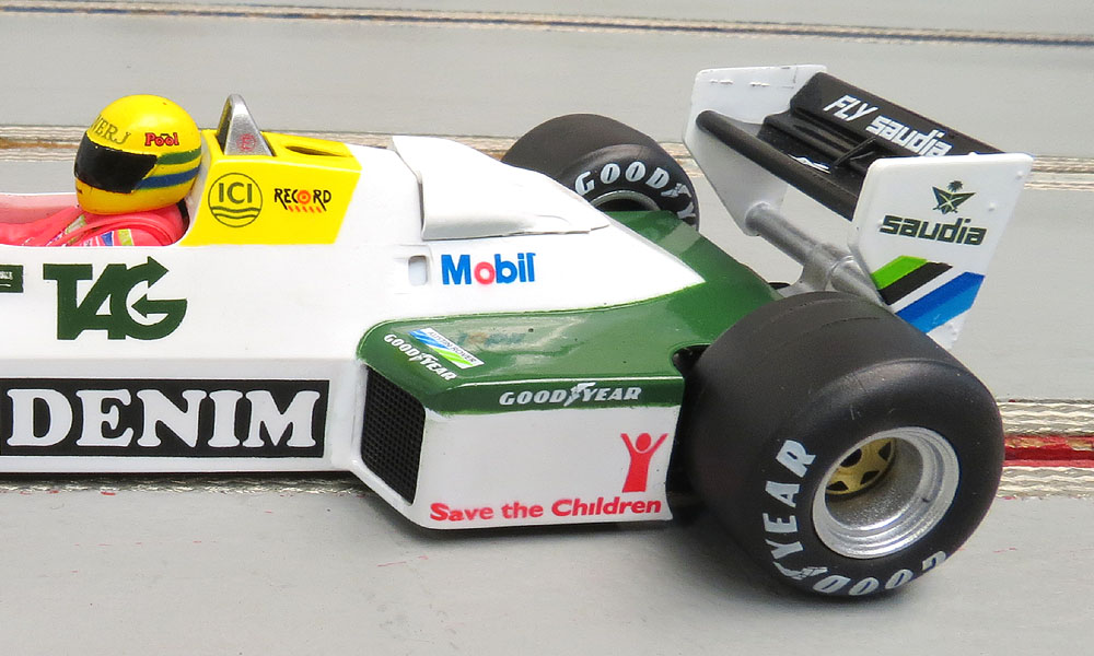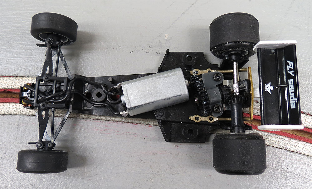 It runs better but not as good as my March or Lotus. Out of the box there is not much of a contest. The March and Lotus are easy 3.7 second range models and are great rivals on the track. This new Williams is simply outclassed. So this gearing arraignment makes a pretty slot car in the back but is it really worth it?